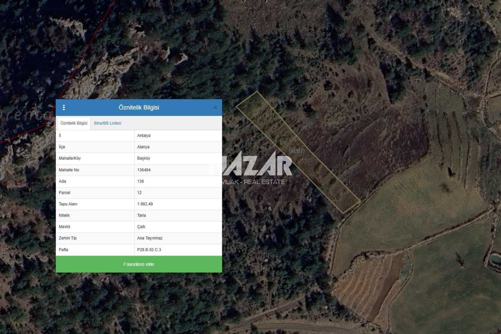 1.693 m2Alanya merkeze 50 km mesafede yer alan 1.693 m² büyüklüğündeki tarla, doğal manzarasıyla hem yatırım hem de tarımsal faaliyetler için uygundur. Arazi, köy yerleşim alanı içerisinde yer almakta olup, çeşitli tarım ürünleri yetiştirmek için ideal koşullara sahiptir.