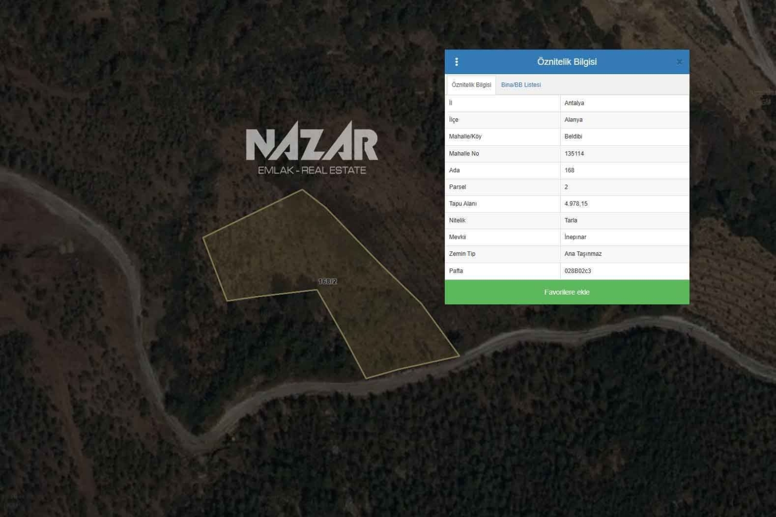 4.978 m2Alanya Beldibi Mahallesi’nde, köy yerleşim alanı içinde yer alan 4.978 m² büyüklüğündeki tarla, 168 ada 2 parsel tapu bilgisine sahiptir. Alanya şehir merkezine 45 km mesafede bulunan arazi, doğa manzarasına sahip olup yatırım ve tarımsal kullanım için uygundur.