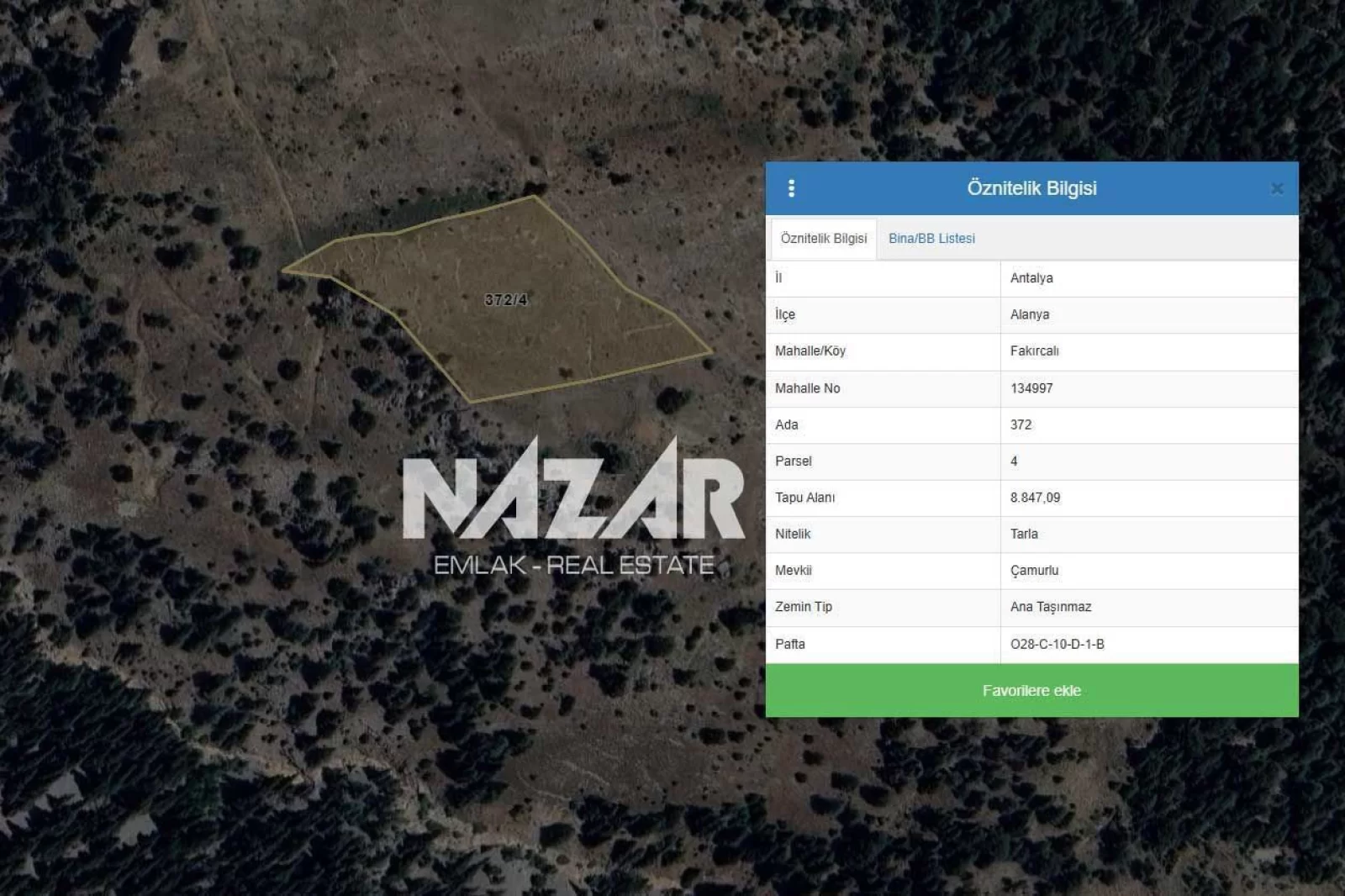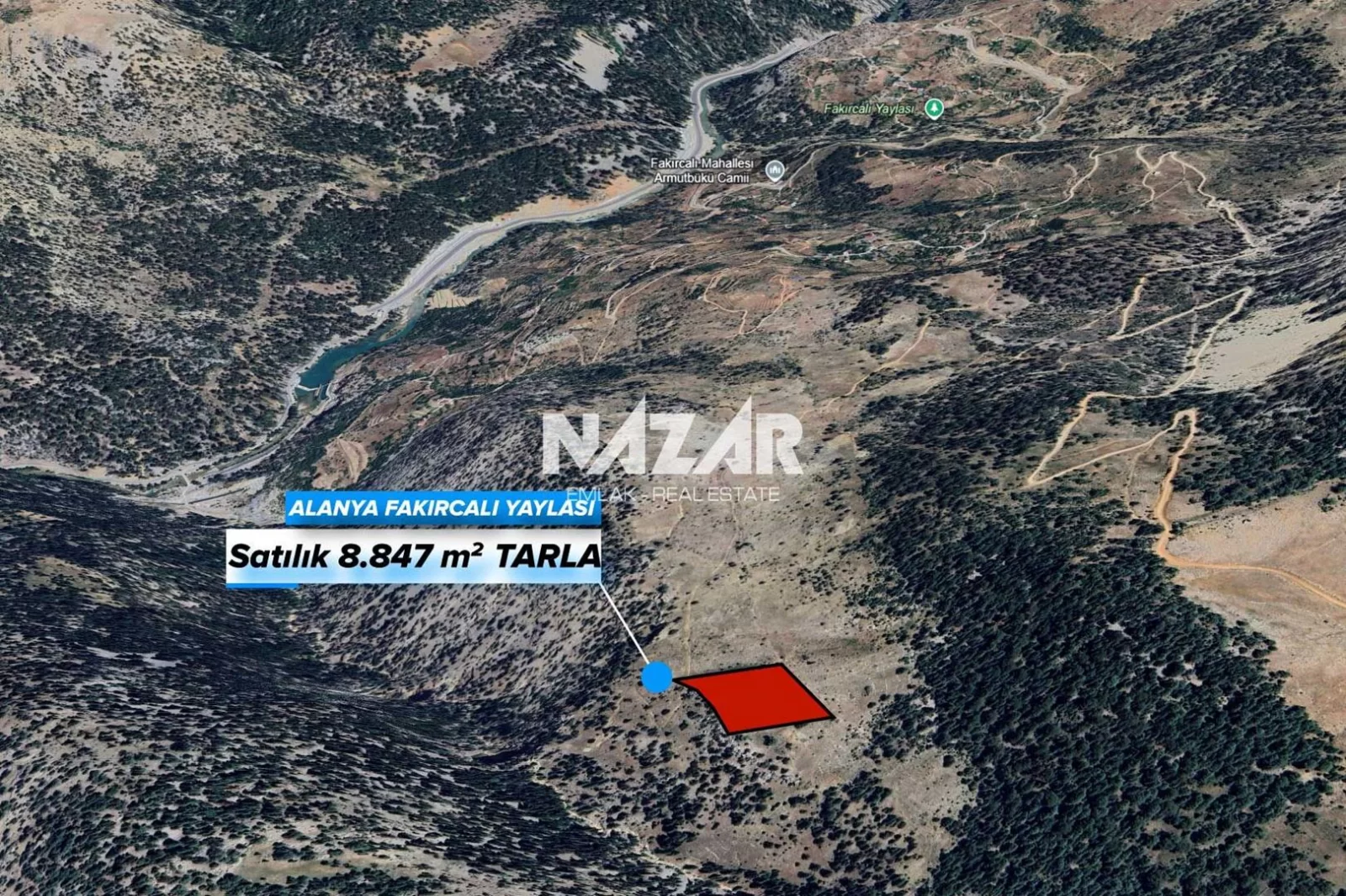 8.847 m2Alanya şehir merkezine 65 km mesafede, Fakırcalı Yaylası’nda yer alan bu 8.847 m² büyüklüğündeki tarla, doğa manzaralı ve resmi yolu bulunan konumuyla dikkat çekmektedir. 372 ada 4 parsel olarak tapuda kayıtlıdır. Köy yerleşim alanına yakın konumda olup, ceviz ve kiraz ekimine elverişlidir.