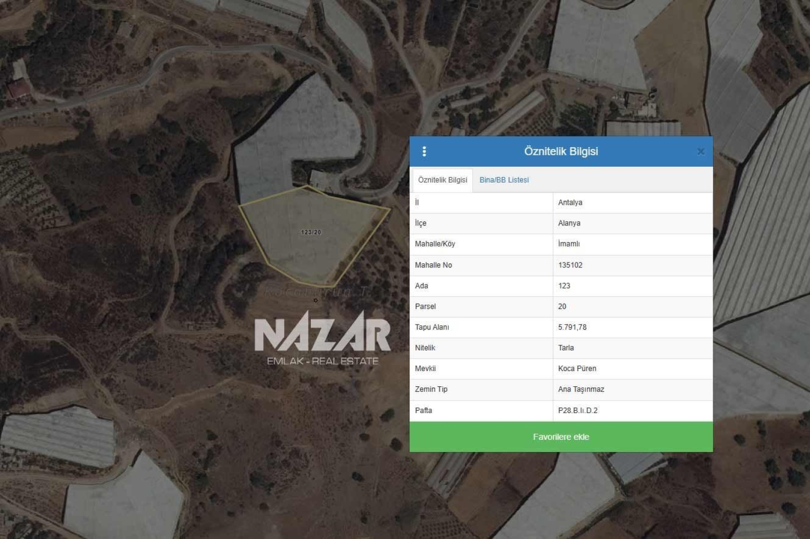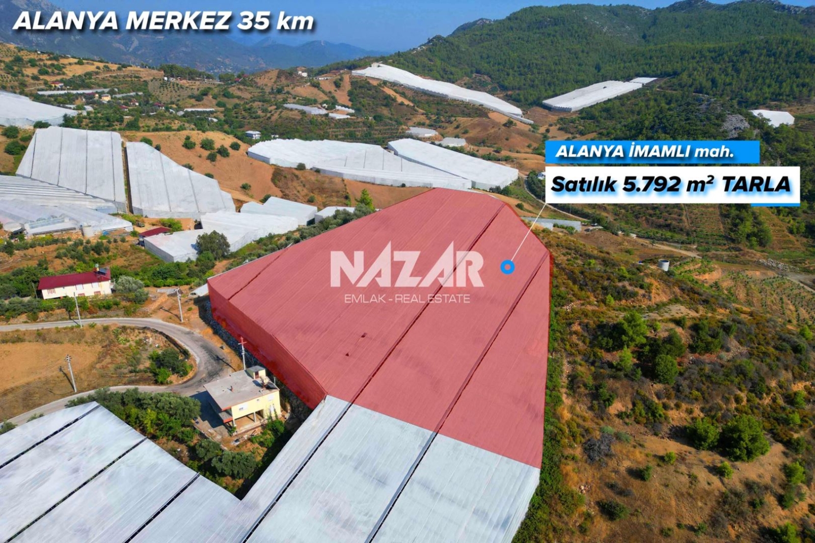 5.792 m2Alanya şehir merkezine 32 km uzaklıkta, İmamlı Mahallesi’nde yer alan bu 5.792 m² büyüklüğündeki kapalı muz serası, yatırım ve tarımsal üretim için oldukça elverişli bir konumda bulunmaktadır. Tapu bilgileri 123 ada 20 parsel olarak kayıtlıdır.