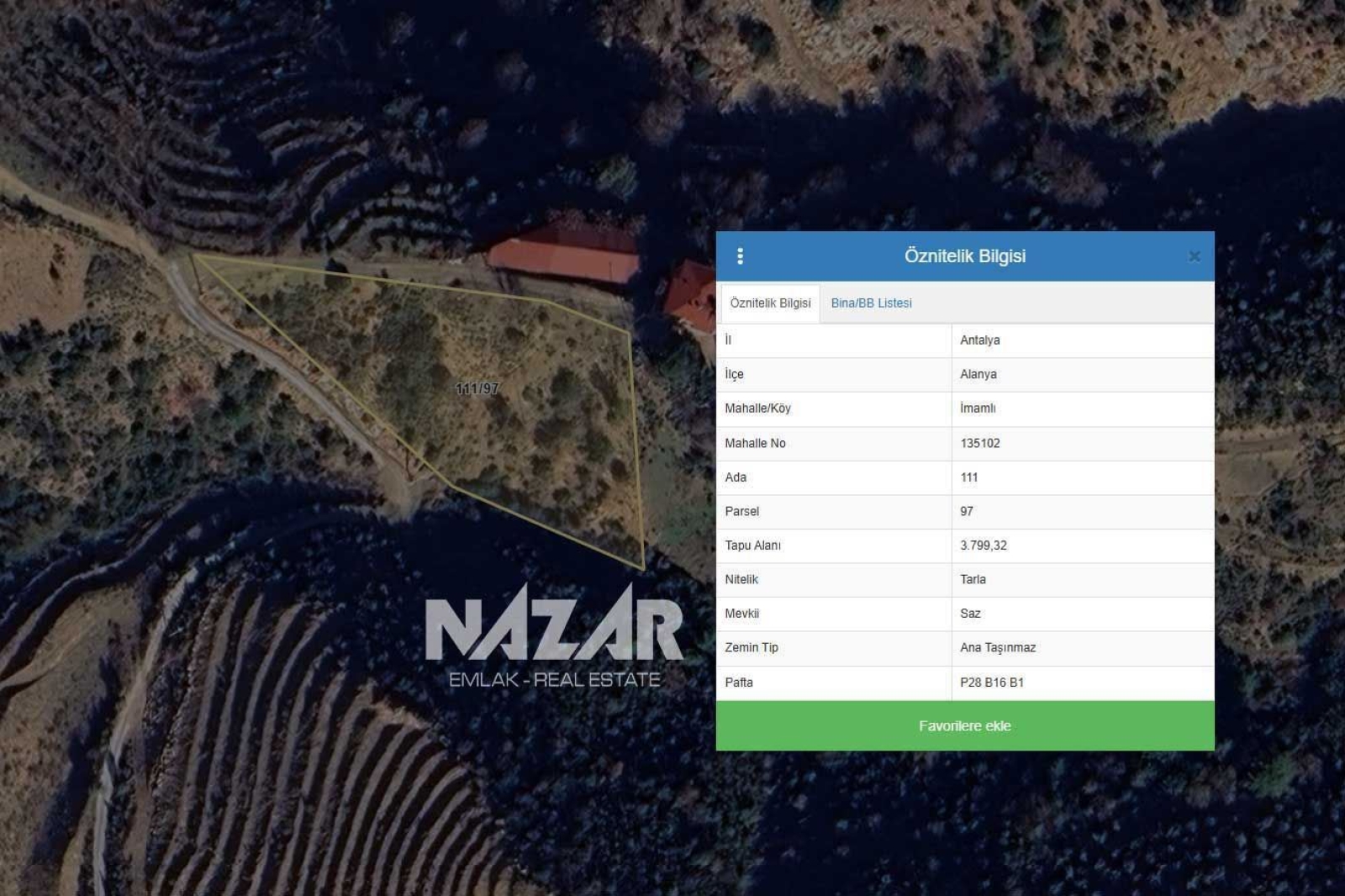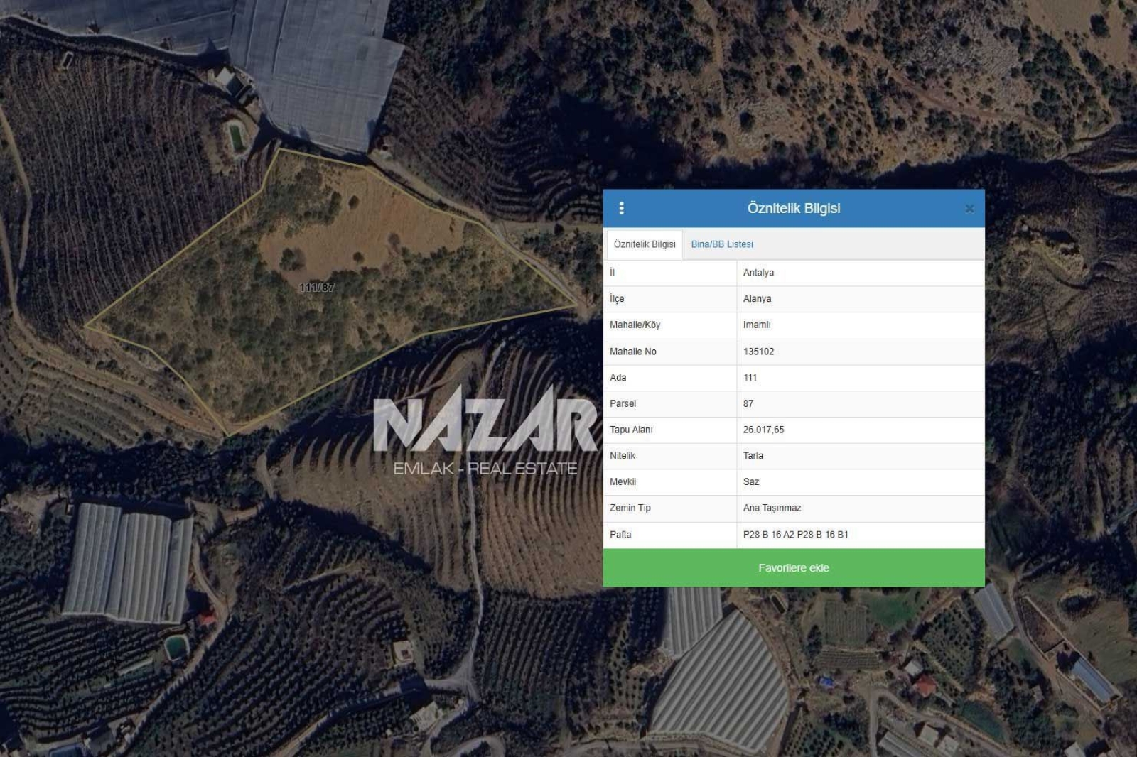 Yol, elektrik ve su altyapısı sorunsuz olup çevresinde seralar ve ekili tarım arazileri yer almaktadır. Kredi ve takas seçeneklerine uygun olan bu geniş tarlayı geleceğe değerli bir yatırım olarak değerlendirebilirsiniz. Bu tarlaya Nazar Emlak aracılığıyla ulaşabilirsiniz.