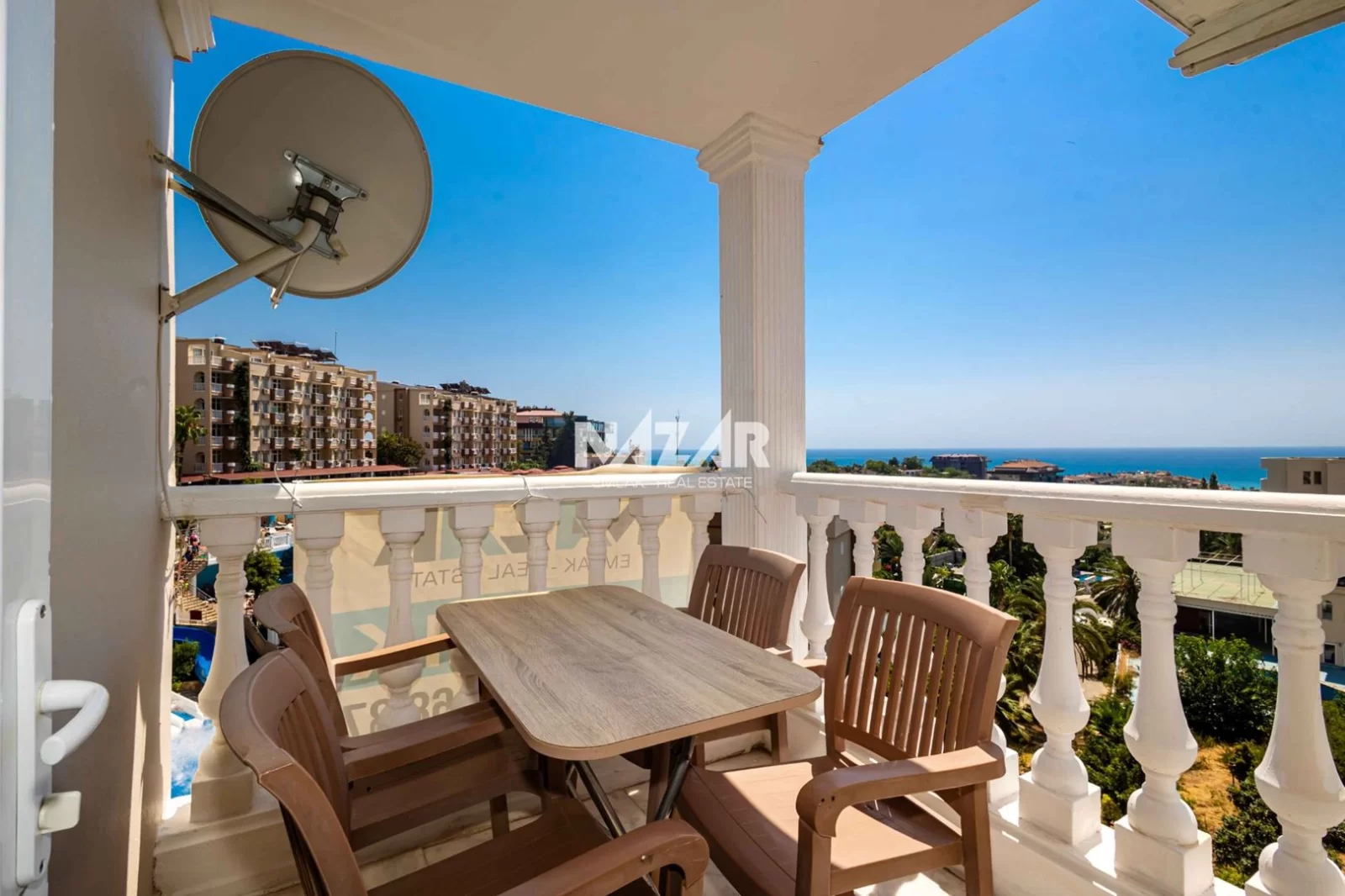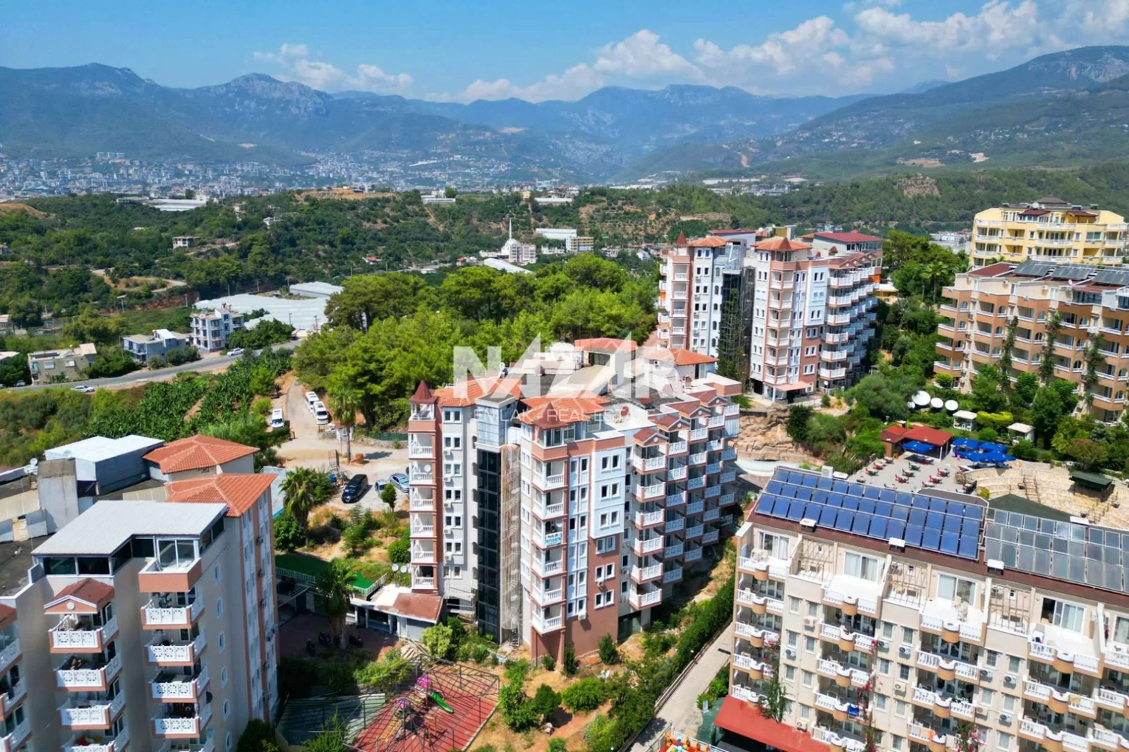 Site içerisinde açık yüzme havuzu, geniş bahçe, oyun parkı, güvenlik ve kapıcı hizmeti bulunmaktadır. Denize 700 metre mesafede olup, çevresinde marketler ve alışveriş imkânları vardır. Alanya şehir merkezine 5 km uzaklıktaki bu manzaralı daireye Nazar Emlak aracılığıyla ulaşabilirsiniz.