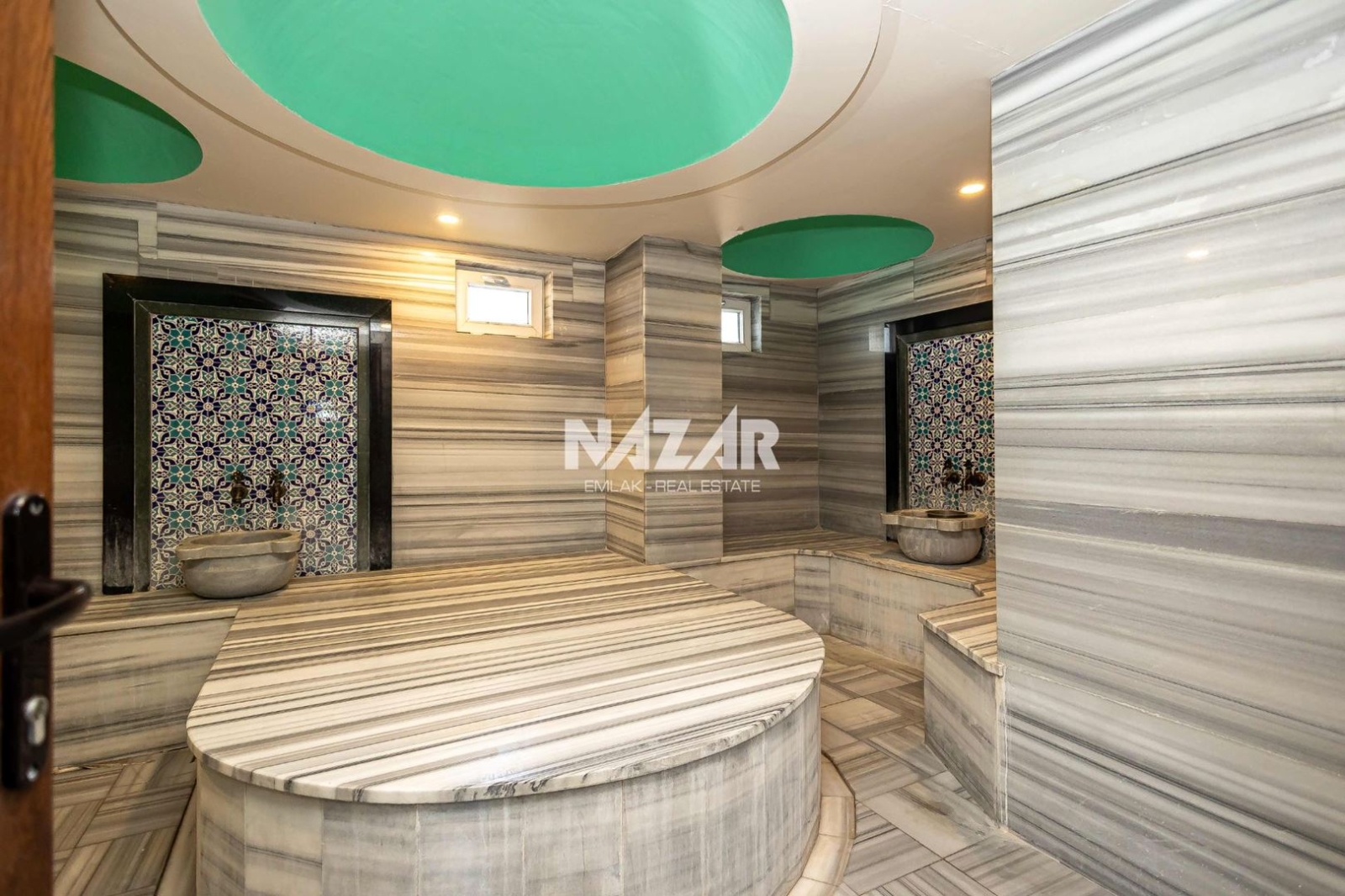 Site olanakları arasında açık/kapalı yüzme havuzu, aquapark, kamelya, çocuk oyun parkı, hamam, sauna, spor salonu, bilardo, barbekü alanı, güvenlik, açık otopark ve asansör bulunmaktadır. Alışveriş noktalarına ve kafelere yakın konumda bulunan bu konforlu daireye Nazar Emlak güvencesiyle sahip olabilirsiniz.