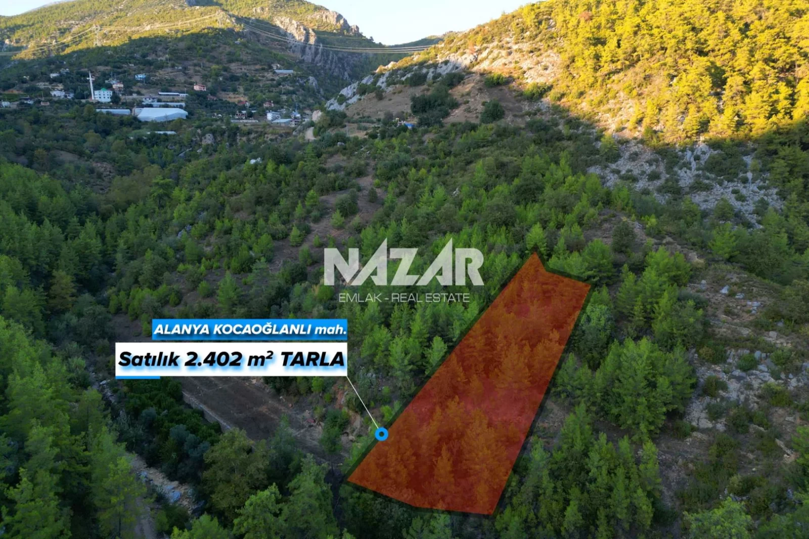 2.402 m2Alanya şehir merkezine 25 km mesafede, Kocaoğlanlı Mahallesi’nde yer alan bu 2.402 m² genişliğindeki tarla, doğa manzaralı konumuyla yatırım ve tarımsal kullanım için uygundur. Köy yerleşim alanında bulunan arazi, hafif eğimli yapıya sahip olup sondaj için elverişlidir.