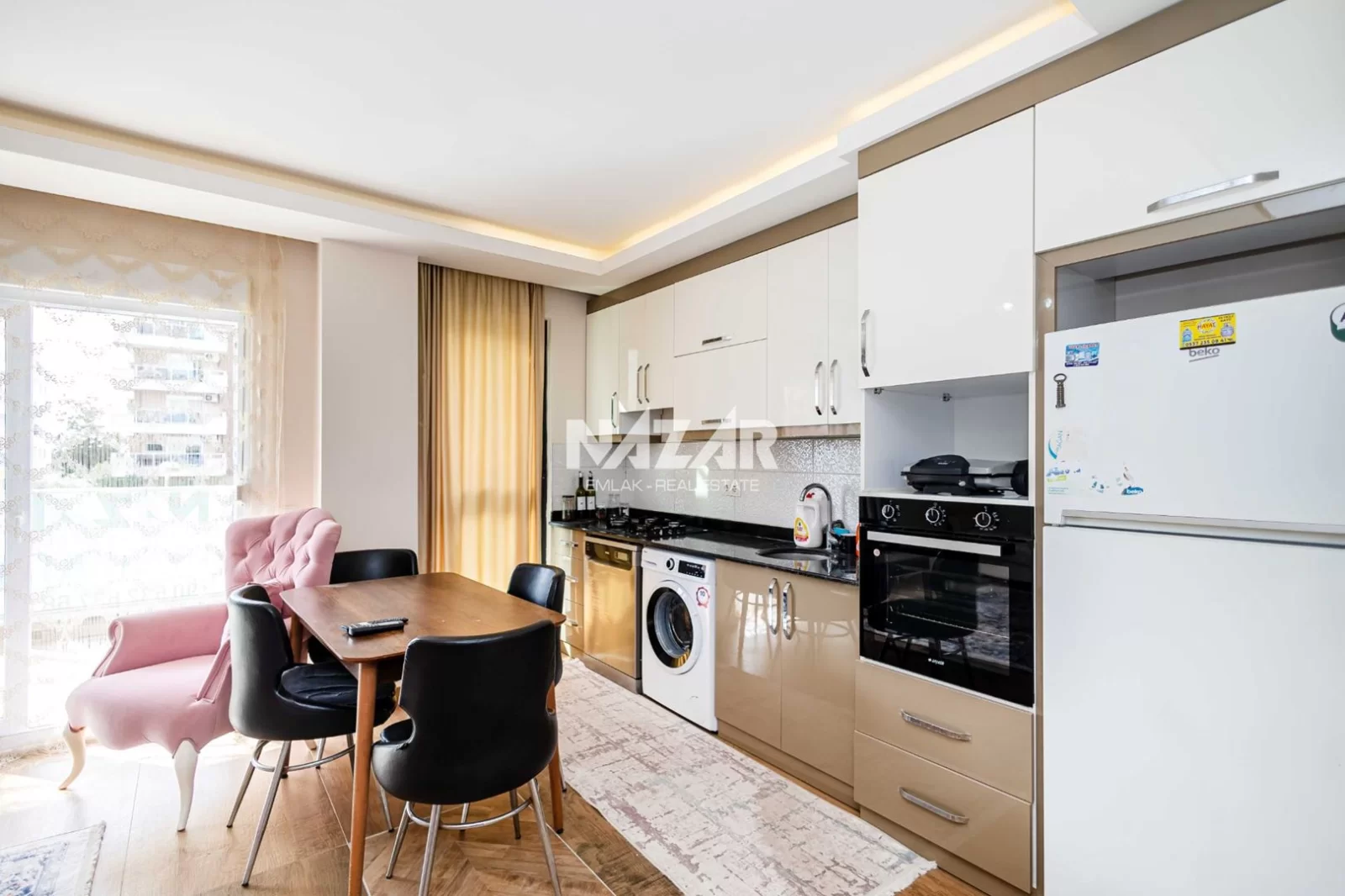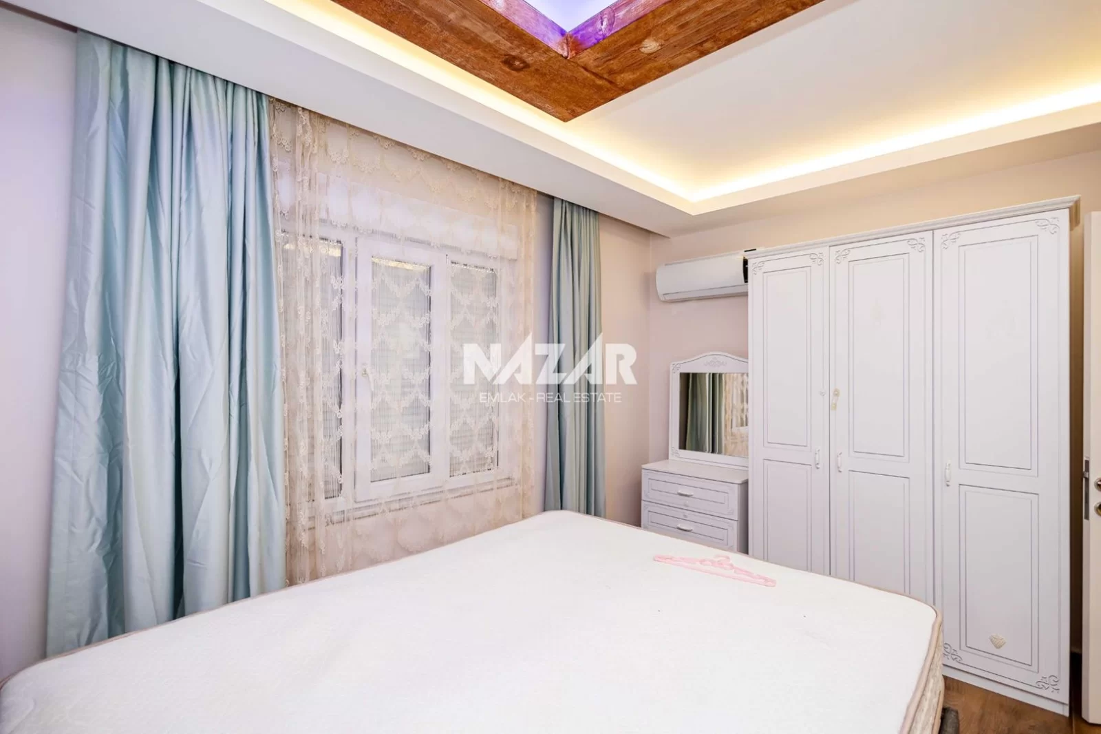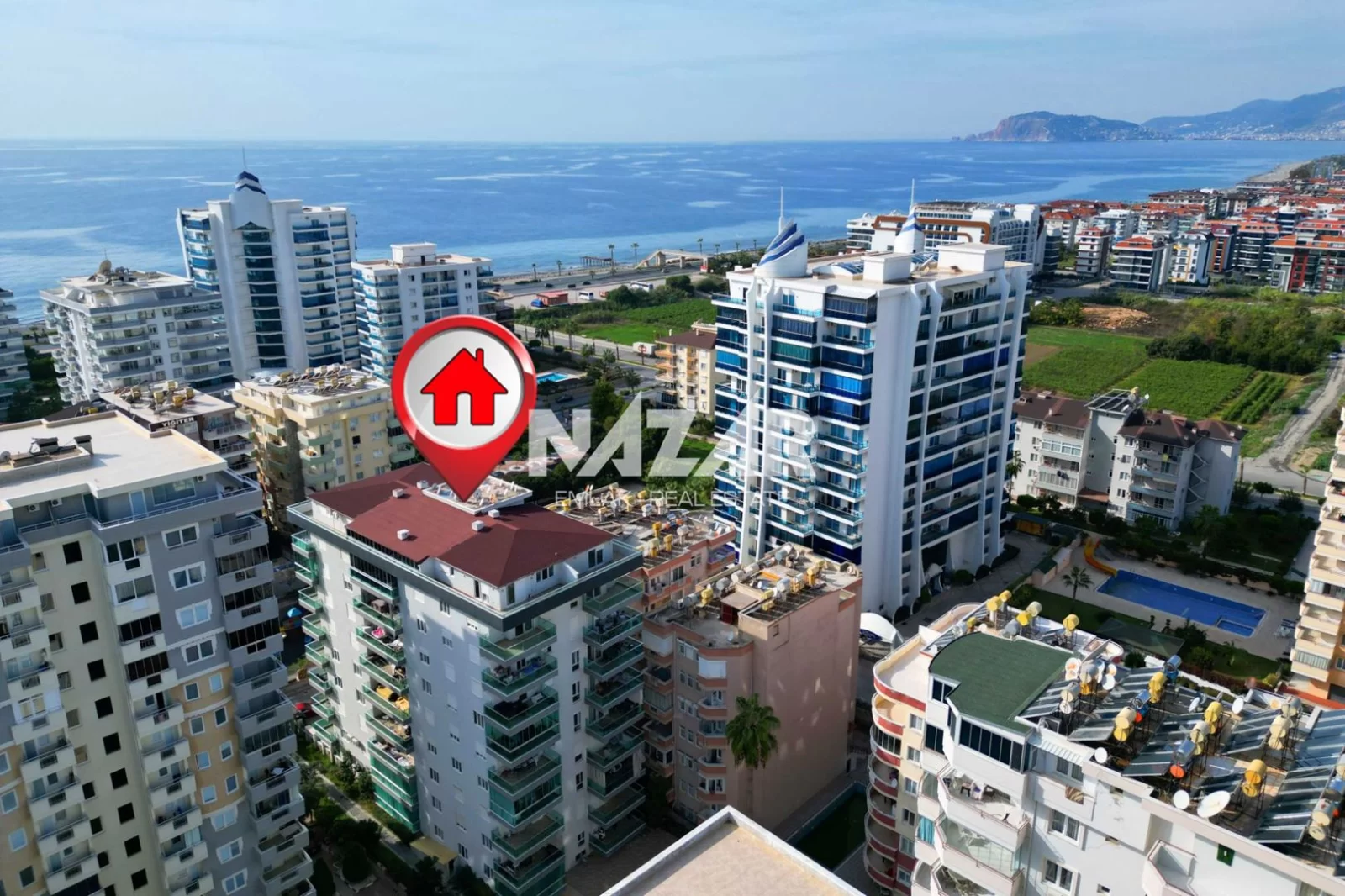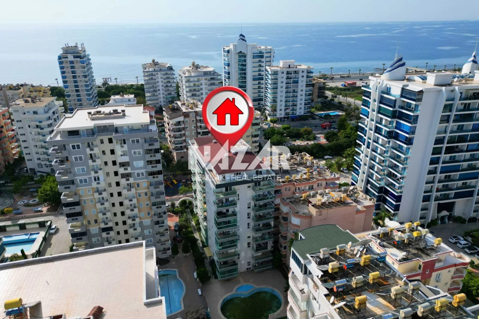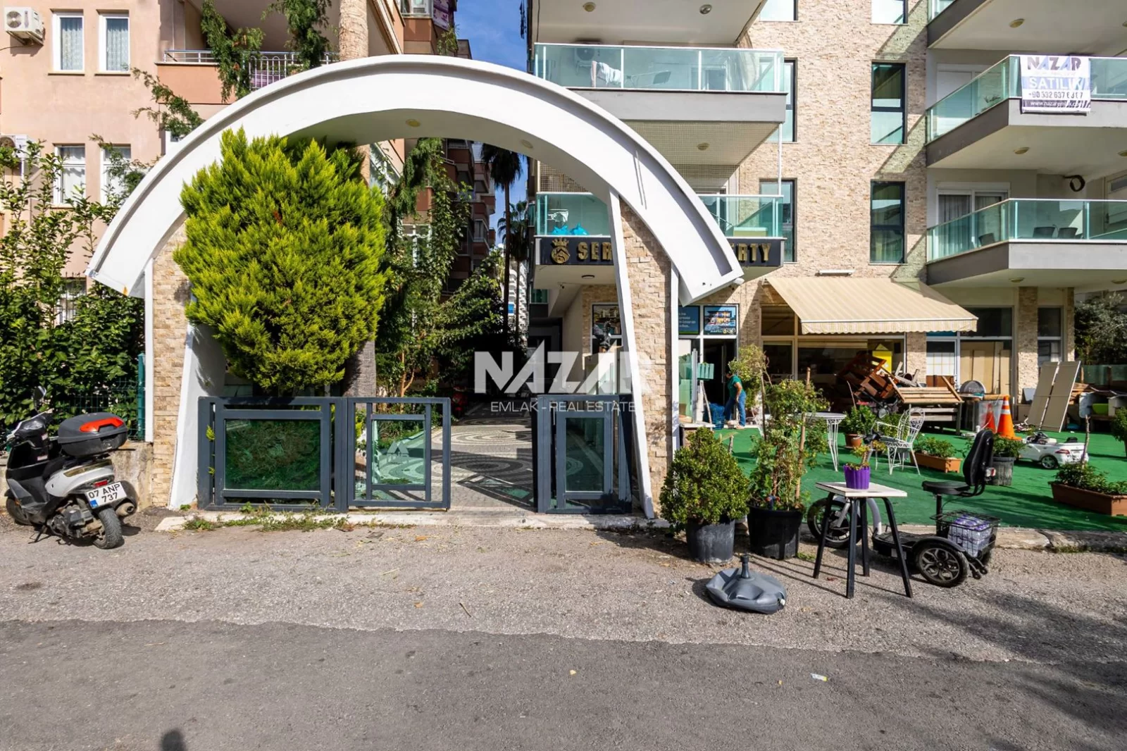 Denize yalnızca 300 metre mesafede olan daire, açık havuz, bahçe, asansör ve apartman görevlisi gibi imkanlarla donatılmıştır. Bu daireye Nazar Emlak aracılığıyla ulaşabilirsiniz.