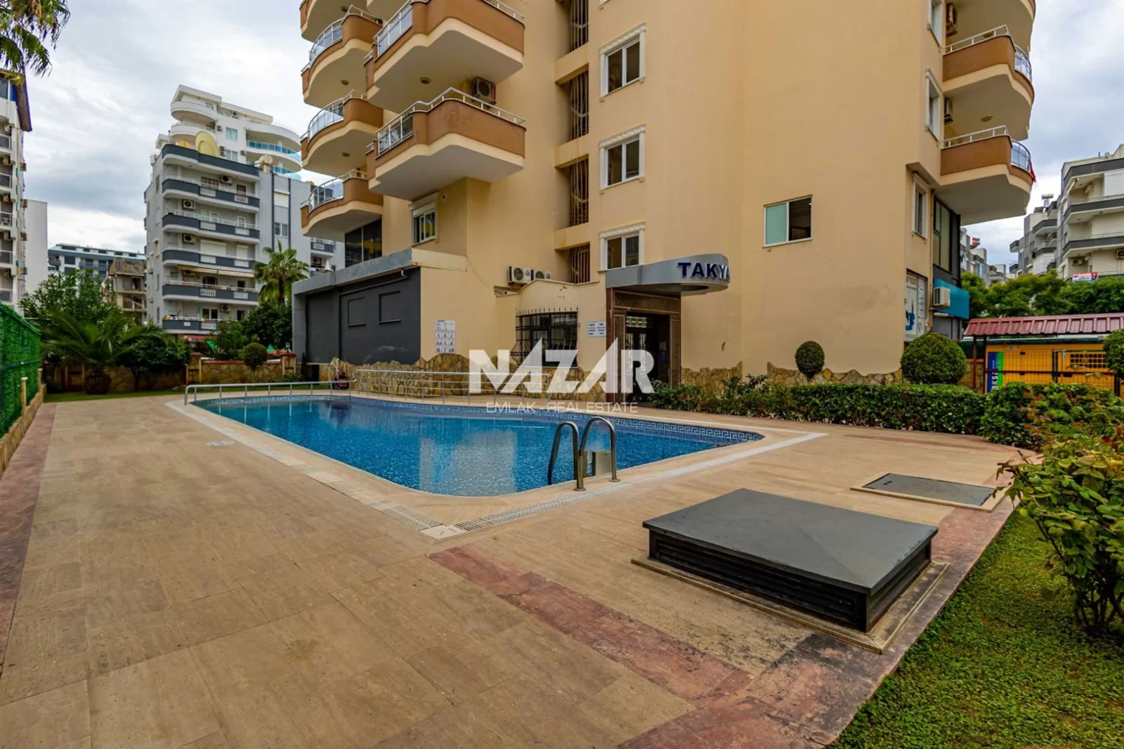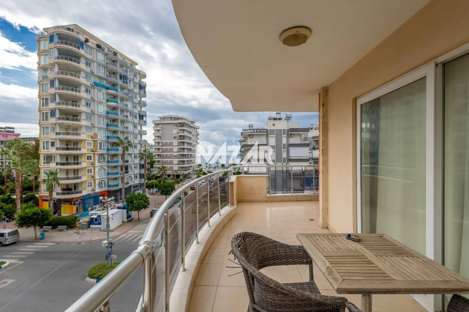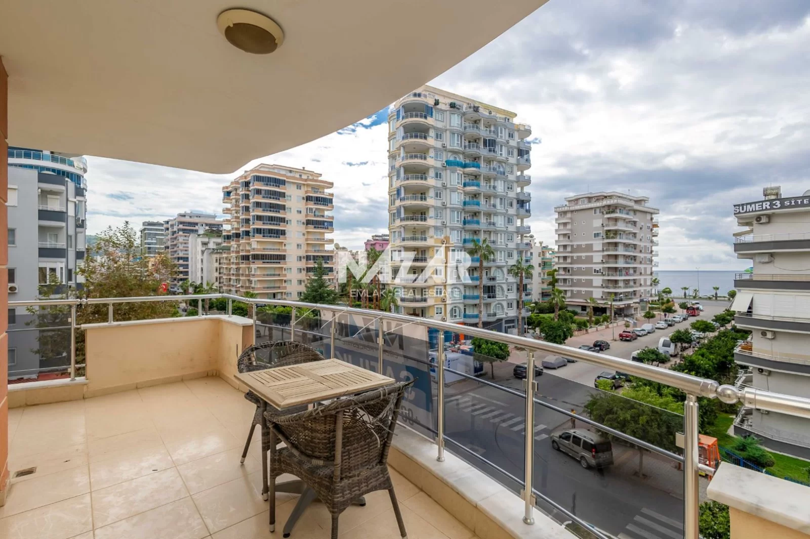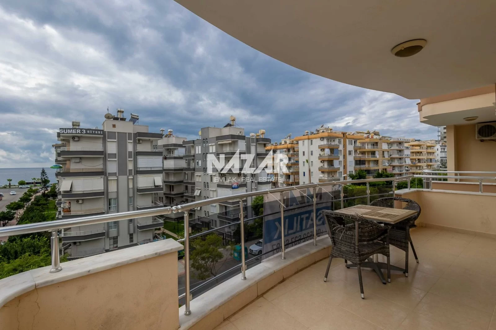 Denize yalnızca 200 metre mesafede bulunan dairemiz, açık havuz, asansör, jeneratör ve apartman görevlisi gibi konforlu yaşam olanaklarına sahiptir. Deniz manzaralı, yatırım değeri yüksek bu daireye Nazar Emlak aracılığıyla ulaşabilirsiniz.