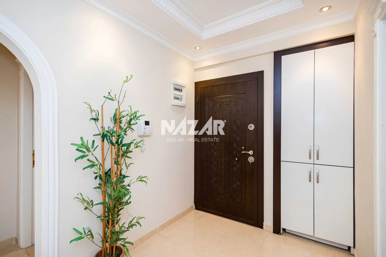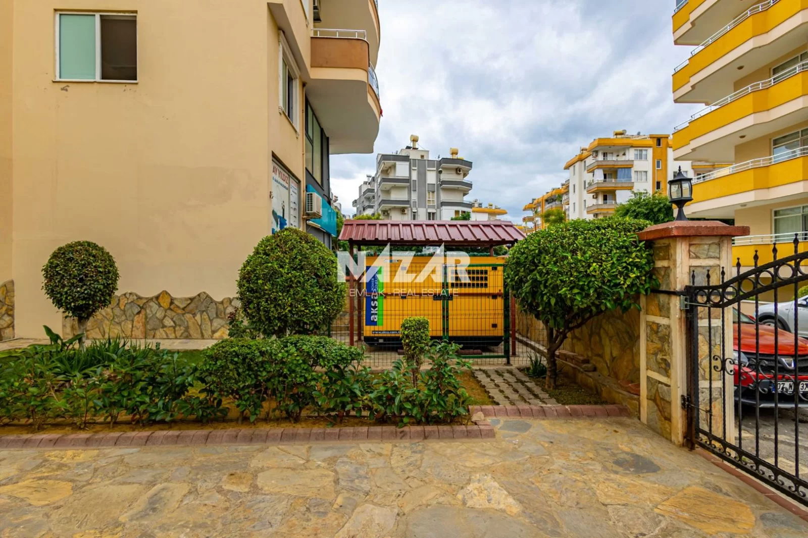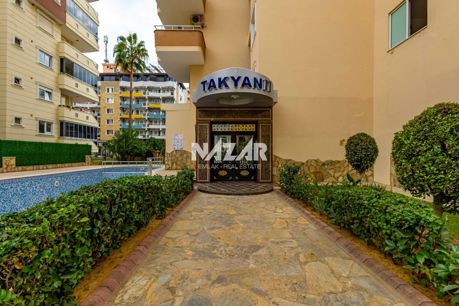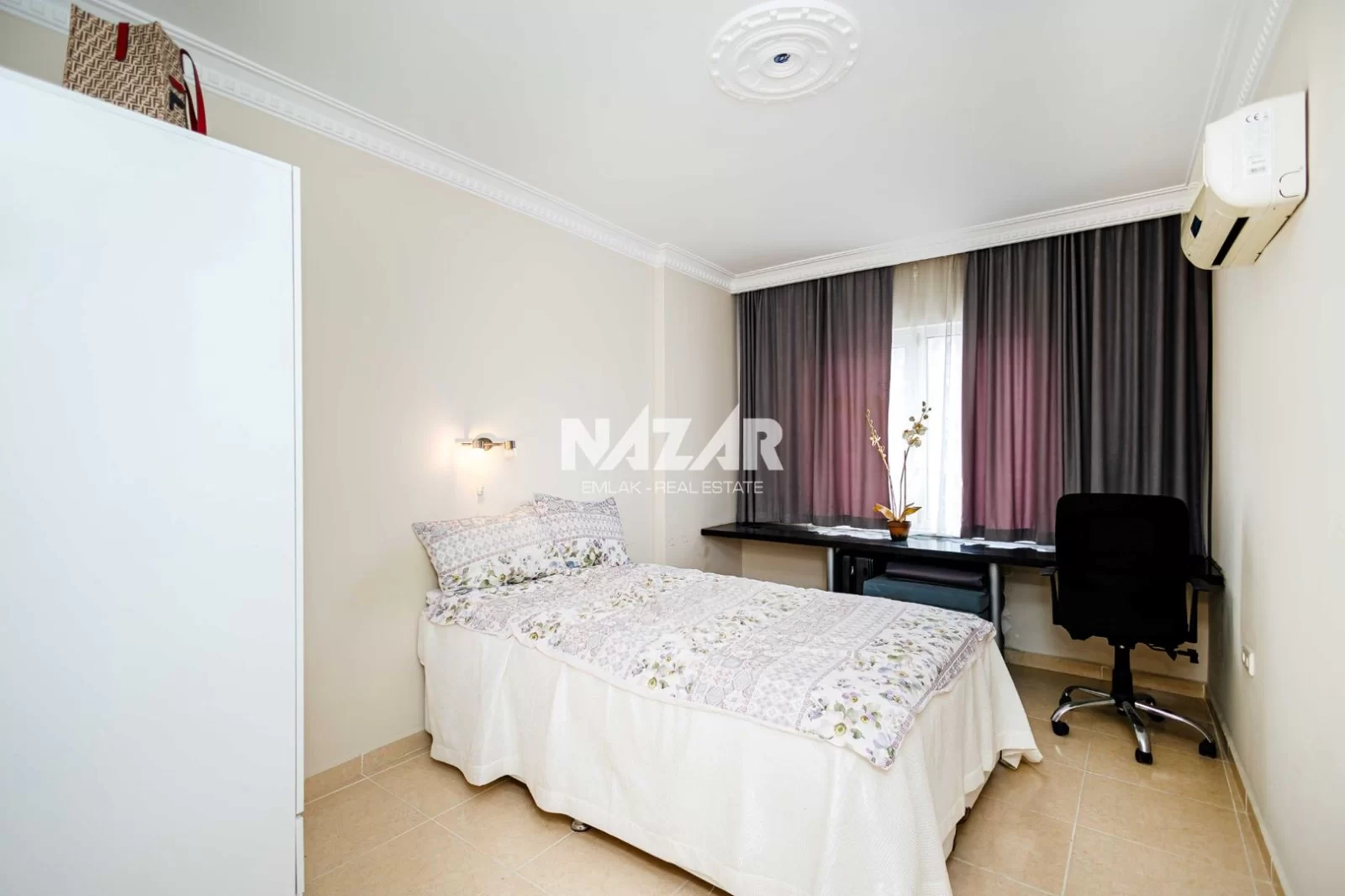 Denize yalnızca 200 metre mesafede bulunan dairemiz, açık havuz, asansör, jeneratör ve apartman görevlisi gibi konforlu yaşam olanaklarına sahiptir. Deniz manzaralı, yatırım değeri yüksek bu daireye Nazar Emlak aracılığıyla ulaşabilirsiniz.