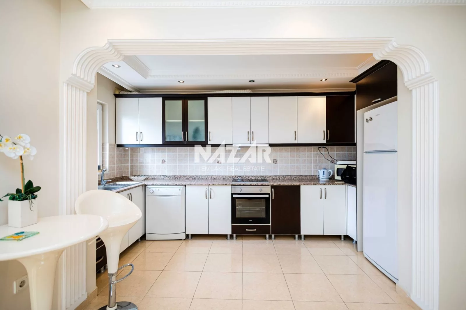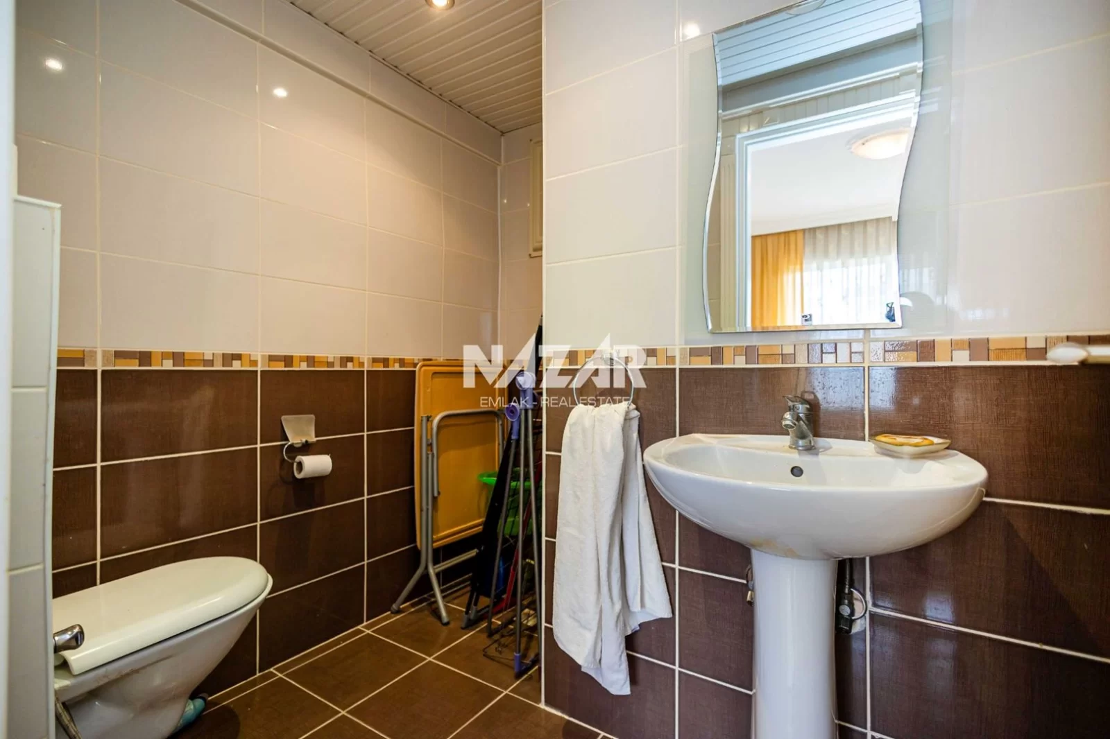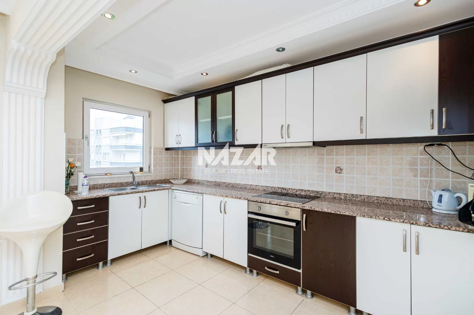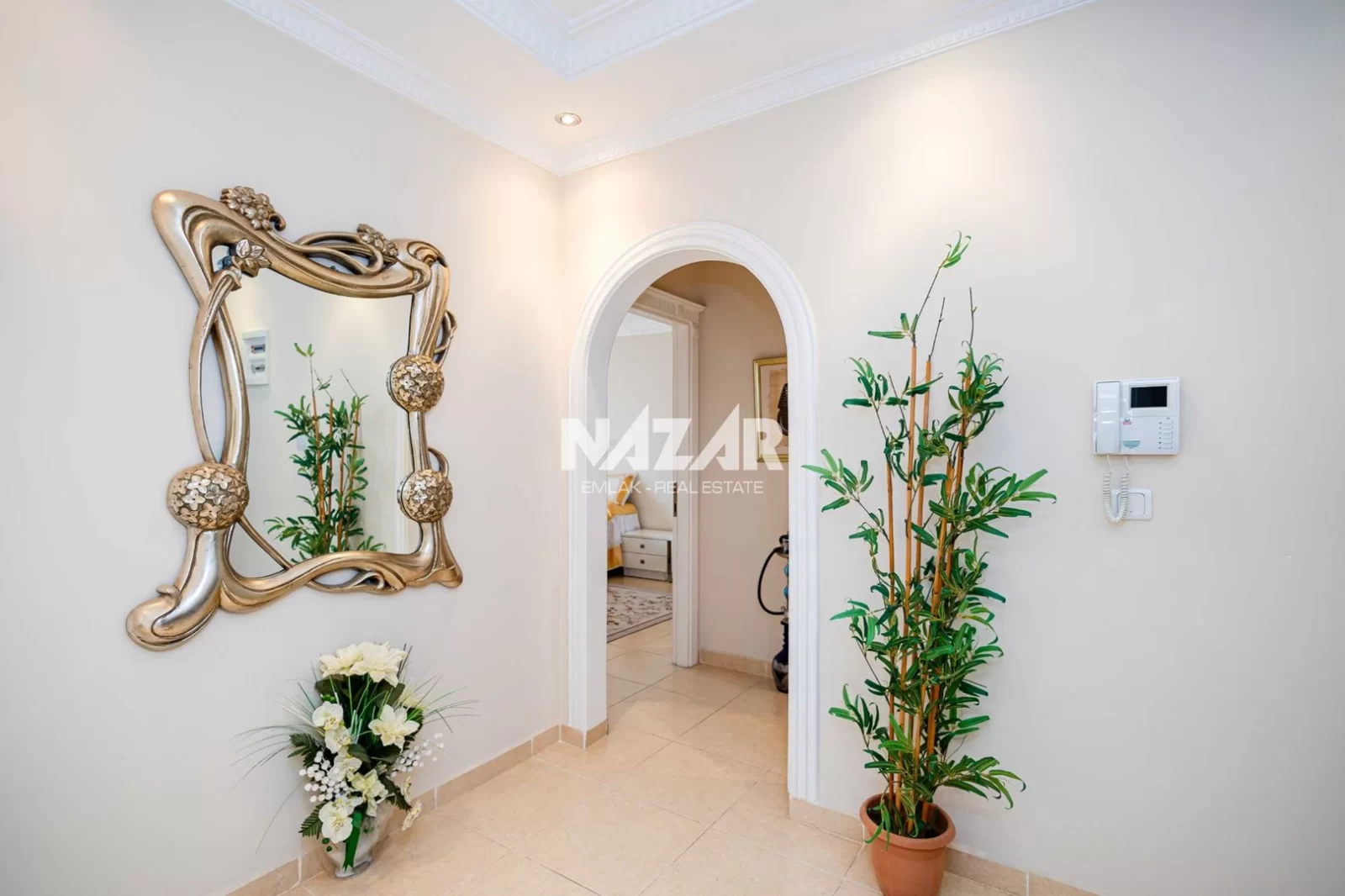 Denize yalnızca 200 metre mesafede bulunan dairemiz, açık havuz, asansör, jeneratör ve apartman görevlisi gibi konforlu yaşam olanaklarına sahiptir. Deniz manzaralı, yatırım değeri yüksek bu daireye Nazar Emlak aracılığıyla ulaşabilirsiniz.