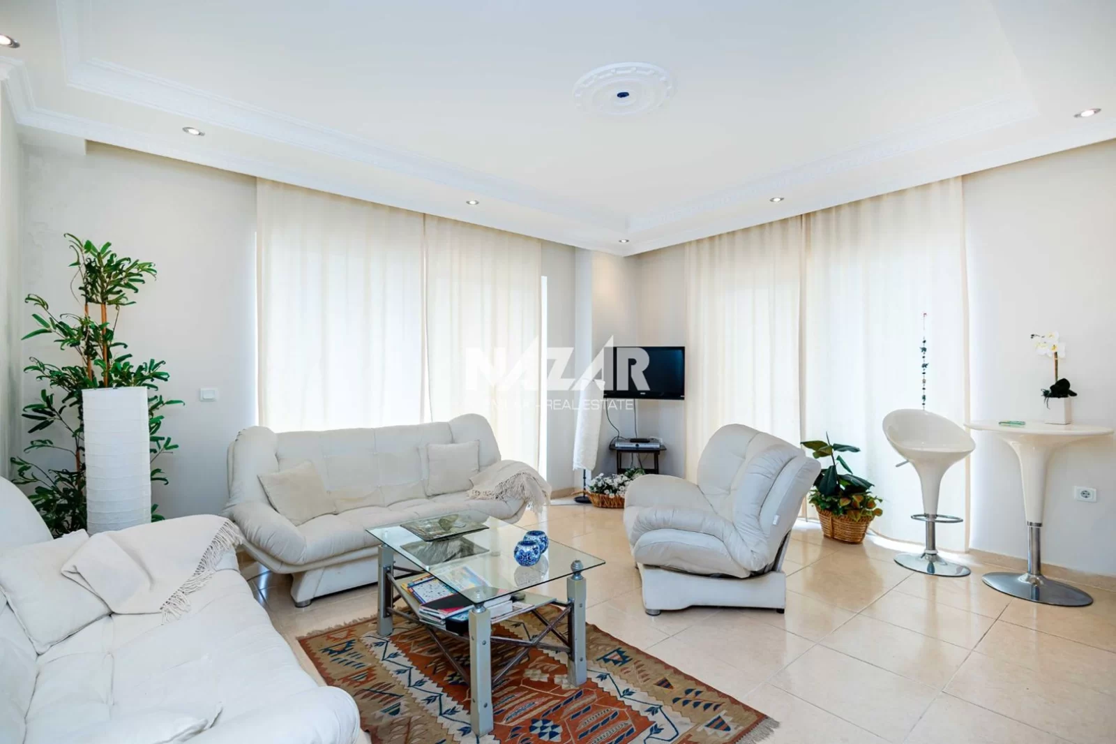 3Alanya Mahmutlar Mahallesi’nde, Takyan 2 Rezidans’ta yer alan bu geniş ve full eşyalı 2+1 daire satılıktır. 115 m² kullanım alanına sahip olan dairede 2 yatak odası, 1 salon, açık mutfak, 2 banyo ve 2 WC bulunmaktadır. Güney ve doğu cepheli olan daire, 7 katlı binanın 3. katında yer almaktadır.