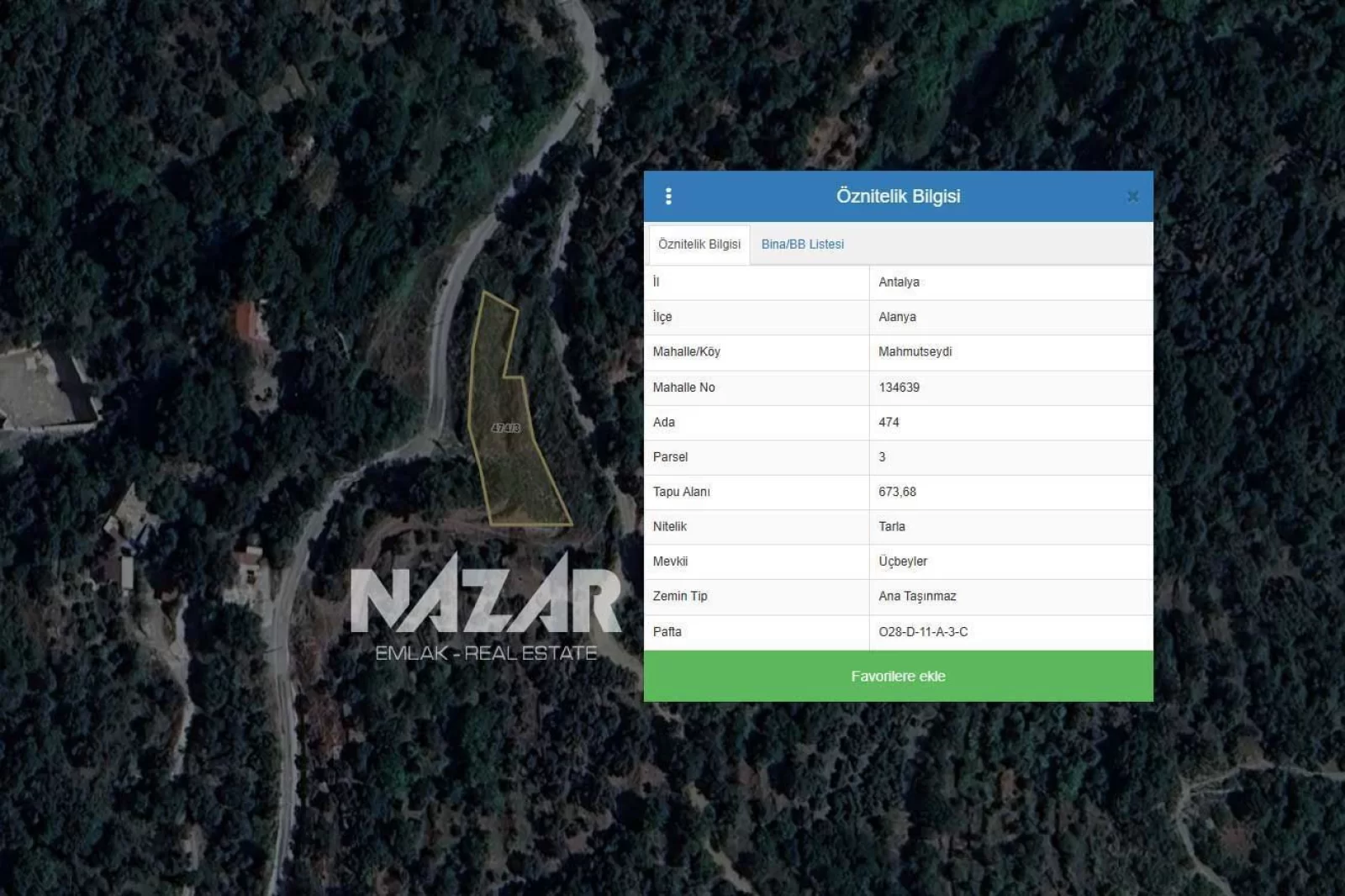 674 m2Alanya şehir merkezine 20 km mesafede, Mahmutseydi Mahallesi’nde yer alan 674 m² büyüklüğündeki bu tarla, köy yerleşim alanı içerisinde konumlanmıştır. Eşsiz deniz manzarasına sahip olup yatırım ve tarımsal kullanım için oldukça uygundur. Tapu bilgileri 474 ada 3 parsel olarak kayıtlıdır.