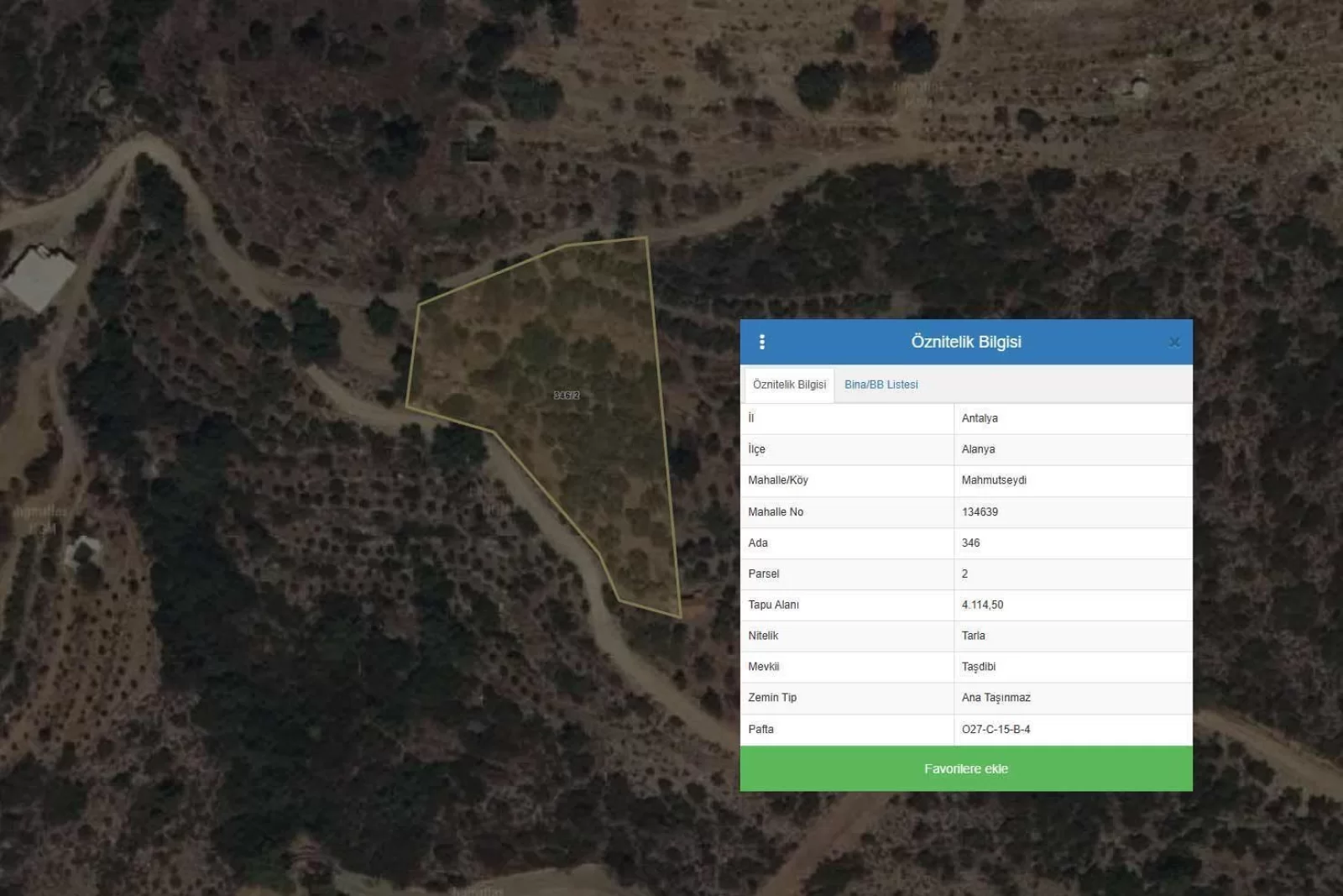 4.115 m2Alanya Mahmutseydi Mahallesi’nde, şehir merkezine yalnızca 17 km mesafede yer alan 4.115 m² büyüklüğündeki tarla satışa sunulmuştur. 346 ada 2 parsel tapu bilgilerine sahip olan arazimiz, anayola yakın, köy yerleşim yerine komşu ve az eğimli yapısıyla hem tarımsal kullanım hem de yatırım amacıyla değerlendirilebilir.