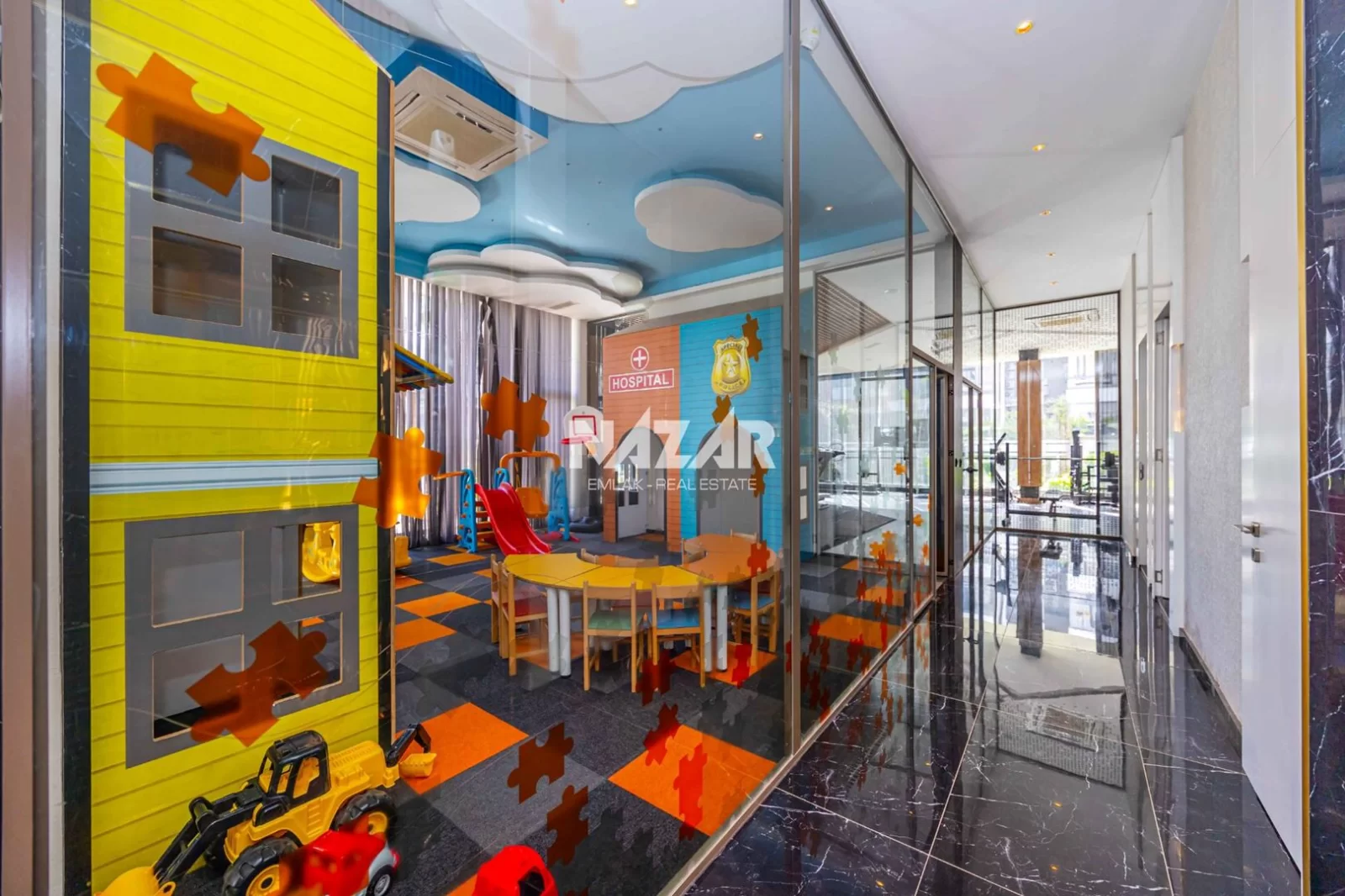 Site içerisinde açık ve kapalı yüzme havuzları, aquapark, açık otopark, pergole oturma alanları, barbekü alanları, çocuk oyun parkı, güvenlik, jeneratör, hamam, sauna, fitness, sinema ve buhar odası gibi birçok sosyal olanak bulunmaktadır. Denize yaklaşık 1,3 km, hastaneye ise 800 metre mesafede yer almaktadır. Bu daireye Nazar Emlak aracılığıyla ulaşabilirsiniz.