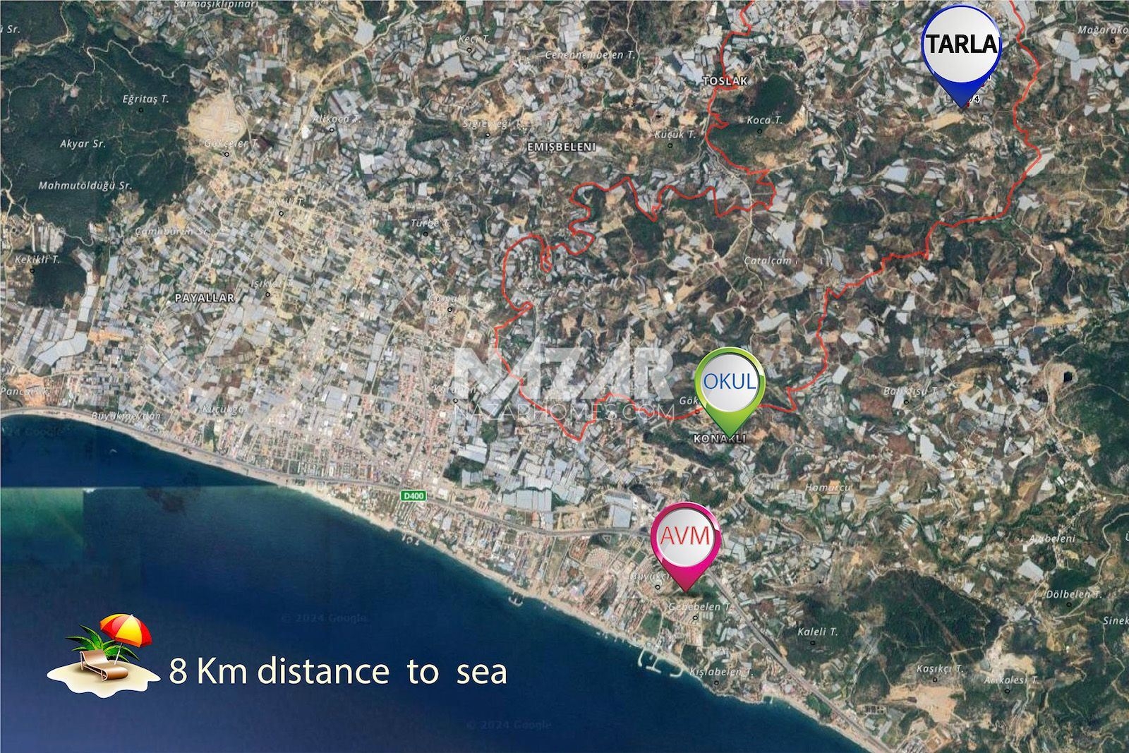 2.351 m2Alanya’nın batı çıkışında, Konaklı Beldesi'nin üst taraflarında bulunan Toslak Köyü'ndeki tarlamız satılıktır. 2.351 m² genişliğindeki bu tarla, Konaklı merkeze 4 km, denize 5 km, Alanya’ya ise 12 km uzaklıkta yer almaktadır. Tapuda 277 ada 4 parsel numaralı tarlanın yolu ve elektriği mevcut olup, harfiyatı yapılmıştır.