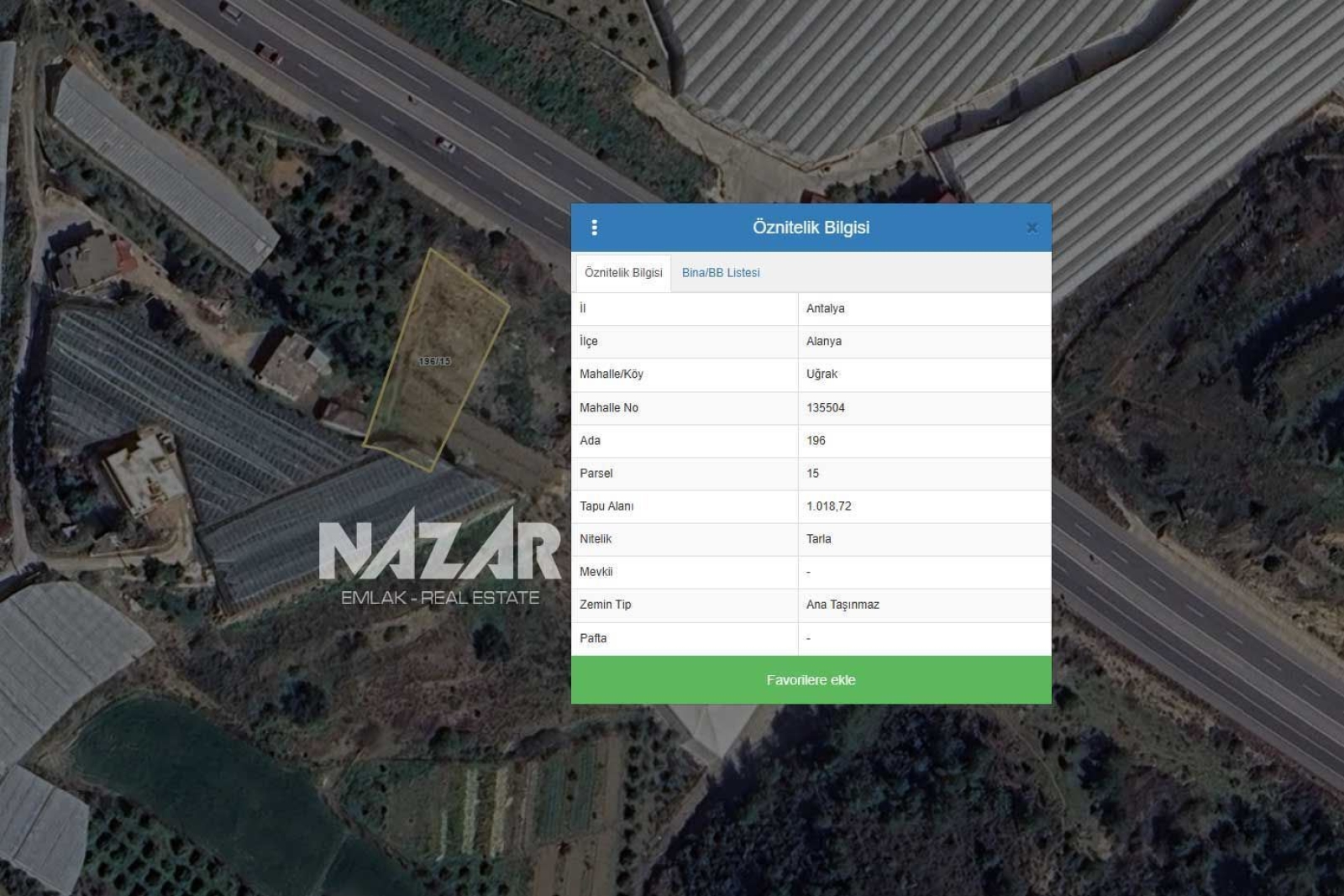 1.019 m2Alanya şehir merkezine 30 km mesafede, Uğrak Mahallesi’nde yer alan bu 1.019 m² genişliğindeki tarla, D400 karayoluna sıfır konumda olup dikkat çekici bir yatırım fırsatı sunmaktadır. Tapu bilgileri 196 ada 15 parsel olarak kayıtlıdır. Projesi hazır olan arazide 250 m² inşaat alanı ve 2 kat yapı izni bulunmaktadır.