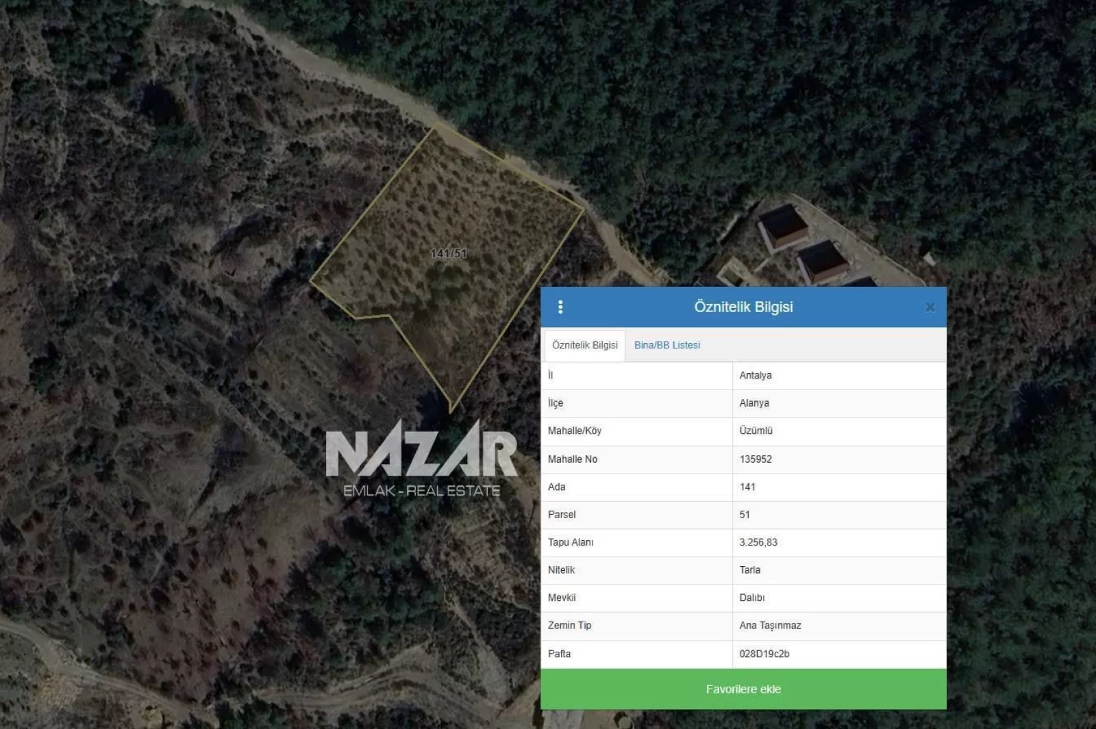 Tarla içerisinde yaklaşık 45 adet zeytin ağacı ve 8 adet keçiboynuzu ağacı bulunmaktadır. Yatırım ve tarımsal kullanım açısından avantajlı olan bu tarla kredi ve takasa uygundur. Bu tarlaya Nazar Emlak aracılığıyla ulaşabilirsiniz.