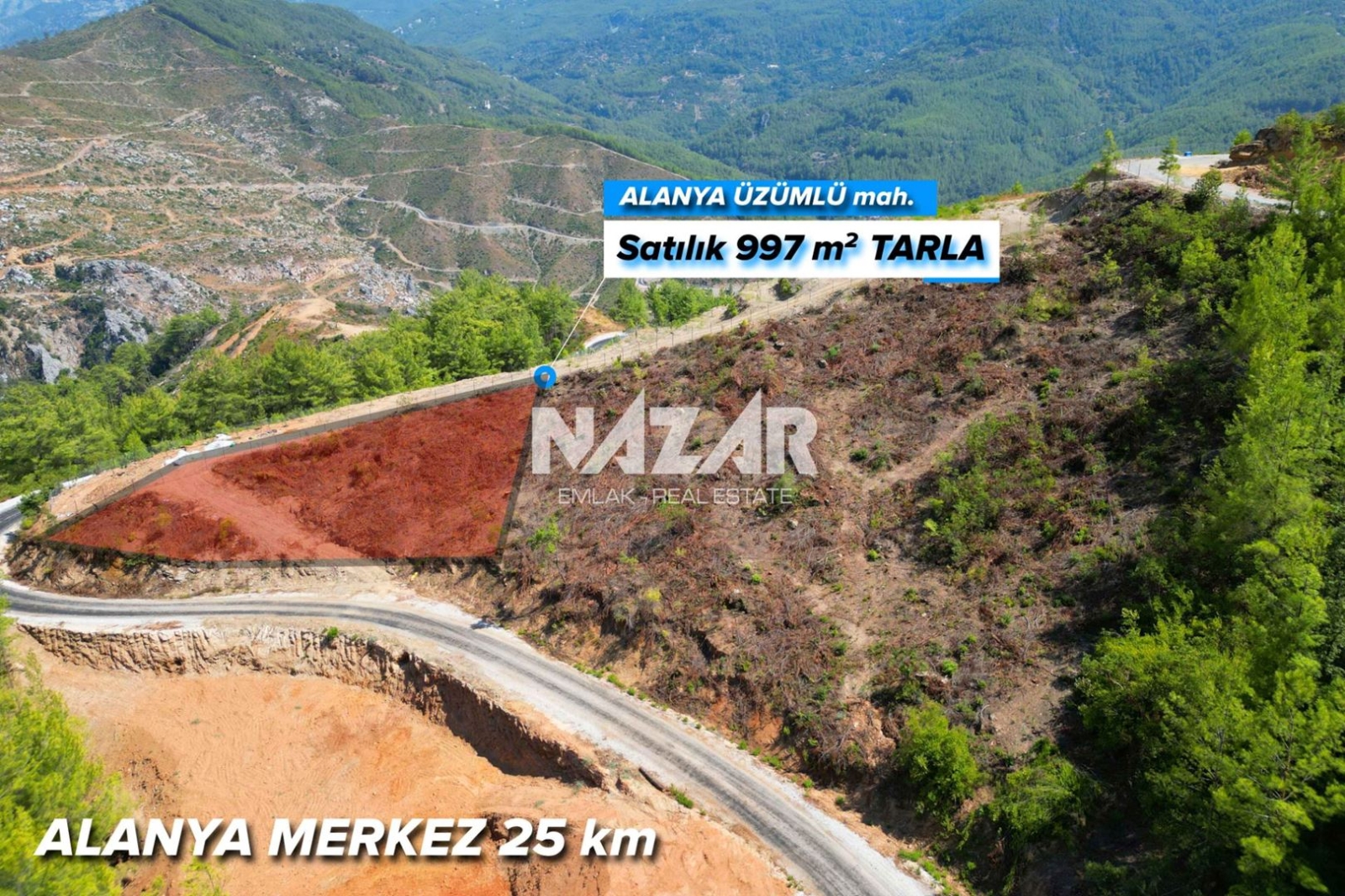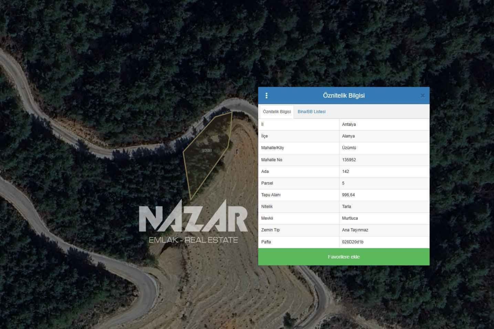 997 m2Alanya Üzümlü Köyü’nde, Dim Baraj Gölü’nün yukarısında yer alan bu 997 m² tarla, vadi ve doğa manzarasıyla dikkat çekmektedir. 142 ada 1 parsel tapu bilgisine sahip olan tarla harfiyatsız olup, 200 metre yakınında yol, elektrik ve su alt yapısı bulunmaktadır. Araziye erişim sorunsuzdur.