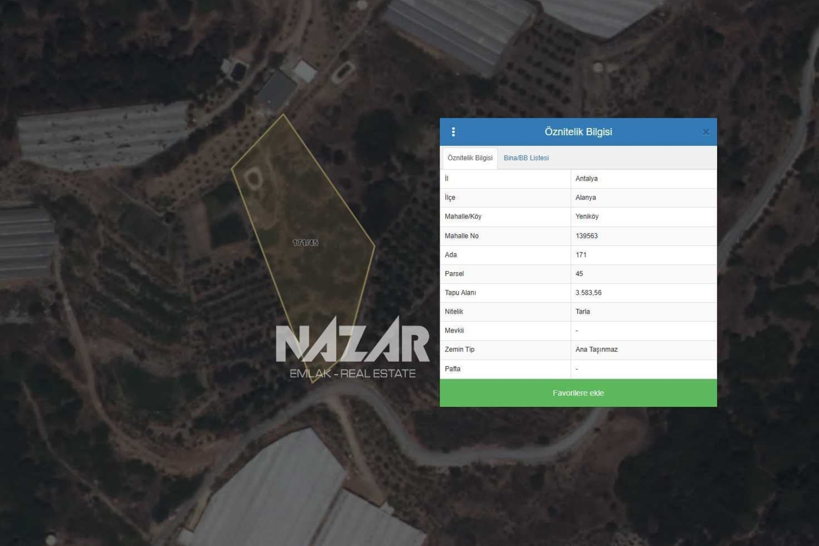 3.584 m2Alanya Yeniköy Mahallesi’nde yer alan 3.584 m² büyüklüğündeki satılık tarla, 171 ada 45 parsel tapu bilgilerine sahiptir. Köy yerleşim yeri içerisinde bulunan tarla az eğimli yapısı ile tarımsal kullanım ve uzun vadeli yatırım için uygun bir konumdadır. Alanya merkeze yaklaşık 20 km mesafede yer almaktadır.