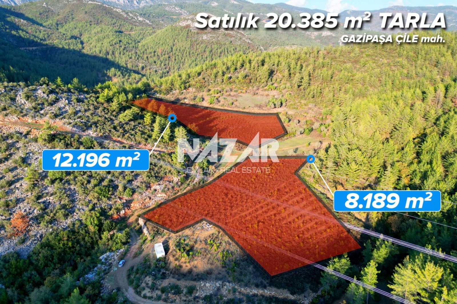 20.385 m2Gazipaşa Çile Mahallesi’nde, 110 ada 3 ve 5 parsel tapu bilgilerine sahip toplam 20.385 m² büyüklüğündeki tarla satılıktır. Anayola yakın konumda bulunan arazi, Gazipaşa merkeze yaklaşık 20 km mesafededir. Köy yerleşim alanına yakın olup gün boyu güneş alan verimli bir lokasyona sahiptir. Elektrik ve su altyapısı sorunsuzdur.