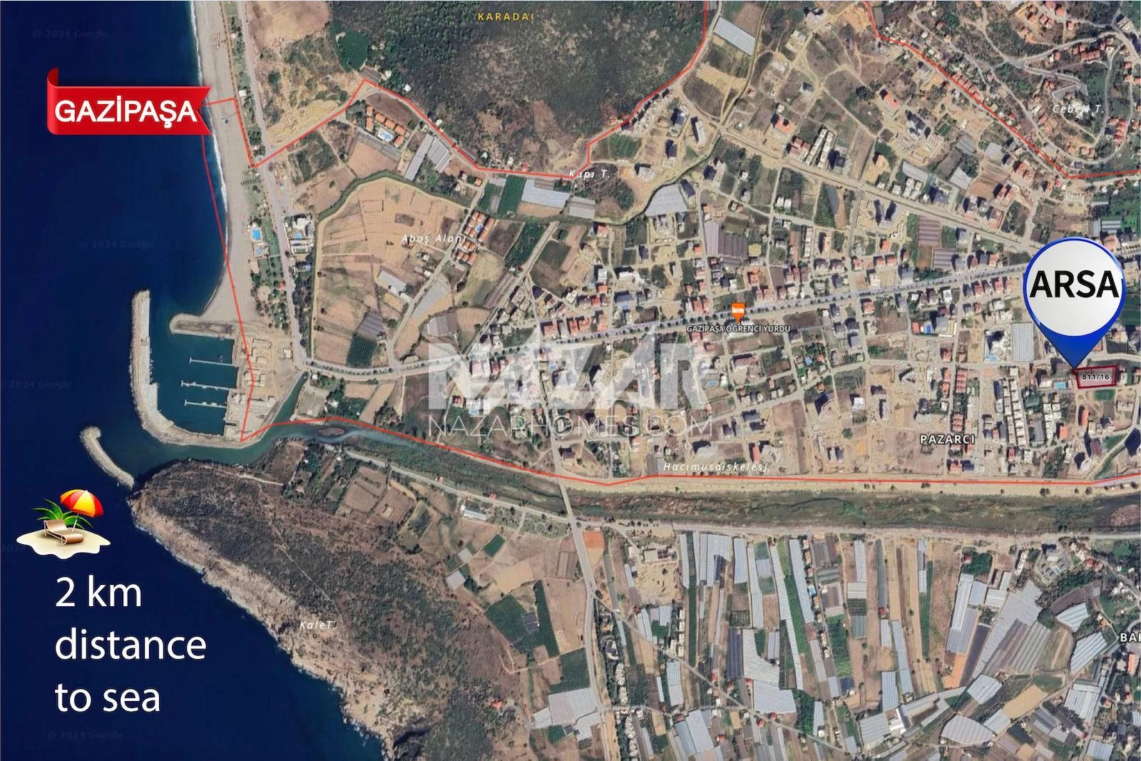 5.163 m2Gazipaşa Pazarcı Mahallesi'nde yer alan, kale ve deniz manzaralı, toplam 5.163 m² büyüklüğündeki konut imarlı arsamız satılıktır. 811 ada 16 parsel tapu bilgisine sahip olan bu arsa, %30 imar oranı, üç kat yapı izni, 0,90 emsal ve 10 kat + çatı imar iznine sahiptir. Denize 2 km uzaklıkta bulunan arsa, konut projeleri için ideal bir yatırım fırsatı sunmaktadır.